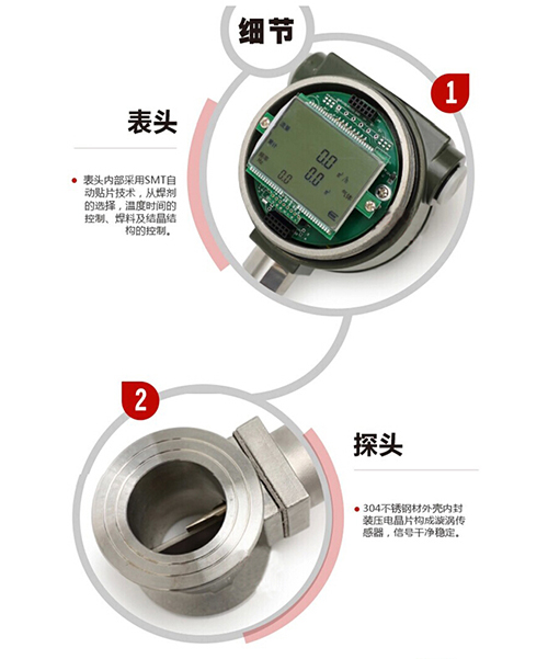 壓力損失小,量程范圍大,精度高,在測量工況體積流量時幾乎不受流體密度、壓力、溫度、粘度等參數的影響。無可動機械零件,因此可靠性高,維護量小。采用壓電應力式傳感器,儀表參數能長期穩定,可在-20℃~+250℃的工作溫度范圍內工作。有模擬標準信號,也有數字脈沖信號輸出,容易與計算機等數字系統配套使用,是一種比較先進、理想的流量儀表