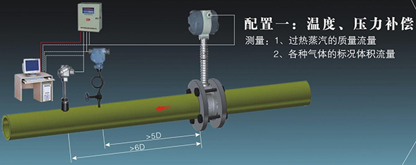 5、表體中同時(shí)集成溫壓補(bǔ)償補(bǔ)償功能,可測量流體的標(biāo)準(zhǔn)體積流量或標(biāo)準(zhǔn)質(zhì)量流量。
