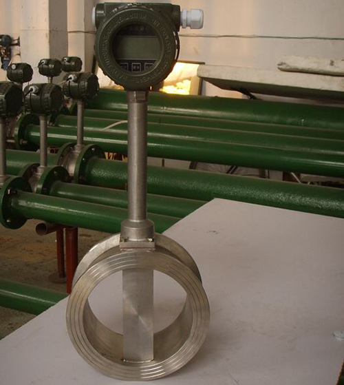 在流體管道中,垂直插入一個柱形阻擋物,在其后部(相對于流體流向)兩側就會交替地產生旋渦。隨著流體向下游流動形成旋渦列,我們稱之為卡門渦街。我們把產生旋渦的柱形阻擋物定義為旋渦發生體實驗證明,在一定條件下旋渦的分離頻率與流體的流速成線性關系。因而,只要檢測出旋渦分離的頻率,即可計算出管道內流體的流速或流量。渦街流量計即是根據這一原來制造。