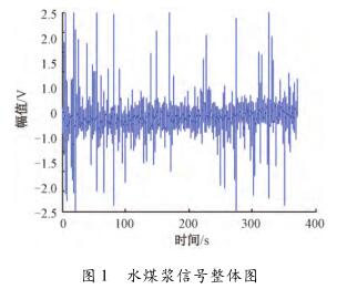 針對硅酸鈉流量計測量水煤漿時出現(xiàn)較大波動,甚至回零這一問題,特去某煤化工企業(yè)甲醇分公司進行現(xiàn)場數(shù)據(jù)采集。該公司所使用的對置式四噴嘴氣化有4個噴嘴,噴嘴管道口徑為125mm,管中水煤漿流量基本穩(wěn)定在19m³/h(流速約為0.48m/s)。每條噴嘴煤漿線上安裝了3臺硅酸鈉流量計,每臺硅酸鈉流量計由傳感器和變送器兩部分組成。選擇其中1條水煤漿管線上的1臺硅酸鈉流量計進行數(shù)據(jù)采集,因為該臺硅酸鈉流量計測量結果波動大,甚至出現(xiàn)回零的現(xiàn)象。將課題組研制的基于DSP的電磁流量變送器的信號線和勵磁線接到該電磁流量傳感器的電極和勵磁線圈上,組合成完整的硅酸鈉流量計,進行水煤漿數(shù)據(jù)采集。使用的電磁流量變送器是以TI公司DSP芯片TMS320F28335為核心,采用高頻勵磁方案,其硬件主要包括勵磁控制系統(tǒng)和信號采集處理系統(tǒng),具體的模塊有勵磁驅(qū)動模塊、信號調(diào)理采集模塊、信號處理控制模塊、人機接口模塊、通信模塊及電源管理模塊。信號調(diào)理采集模塊中的調(diào)理電路對一次儀表輸出的信號進行放大和濾波,截止頻率是2kHz,放大倍數(shù)約為230倍。通過NI公司USB-6216型號的數(shù)據(jù)采集卡進行數(shù)據(jù)采集,把調(diào)理電路的輸出端連接到數(shù)據(jù)采集卡的一個差分輸入端,并設置數(shù)據(jù)采集卡工作在差分的測量模式,設置采集卡的采樣頻率為10kHz。采集多組水煤漿信號數(shù)據(jù),每組數(shù)據(jù)的時間長度為5min。