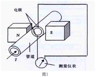 濃硝酸流量計的設計是根據法拉*電磁感應定律,導管中導電的流體被看作導體,管道的內徑可看作道導體的長,原理圖如圖1所示,兩電極裝到與管道的中心軸和磁場方向組成的平面相垂直,拾取液體產生的感應電動勢。感應電動勢為: