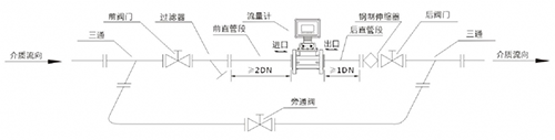 成品油流量計在測量過程中對直管段的一般性要求為:流量計必須水平安裝在管道上(管道傾斜在5以內),安裝時流量計軸線應與管道軸線同心,流向要一致。 流量計上游管道長度應有不小于2D的等徑直管段,如果安裝場所充許建議上游直管段為20D、下游為5D。