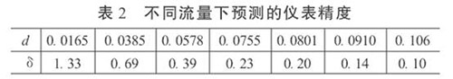 3.直管段長度和成品油流量計精度的初步預測在工程設計中,根據流體性質、流量和雷諾數確定α和d值。這樣,按照式(5)就可以依不同的流量計精度要求,對直管段長度進行初步預測,或確定直管段長度后,對流量計的精度做初步預測。當δ= 0.2%時,不同流量下所需直管段長度見表1。