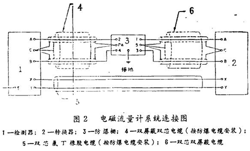 它把從檢測器來的電勢(mv)信號,轉換成統一的4一20mA直流信號,從+I和I-端輸出,便于與統一的單元組合儀表配套使用,如調節器的測量,記錄儀等。轉換器的數字顯示面板能指示出當前的瞬時流量(100%刻度)。轉換器的脈沖輸出端為P+和P一。電源為交流120伏,系統連接見圖2。