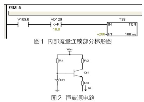 (2)PLC及模塊。PLC及模塊是自動化控制系統(tǒng)主要設(shè)備,且PLC及模塊屬于高集成高精密電子設(shè)備,保持室內(nèi)整潔舒適,可以提高自動化系統(tǒng)運行穩(wěn)定性。PLC及模塊硬件運行可靠,內(nèi)部控制程序是其控制核心軟件,如PLC硬件出現(xiàn)故障或損壞一般直接更換,但原內(nèi)部控制軟件無法上傳,整個控制系統(tǒng)成失控狀態(tài)。所以其內(nèi)部控制程序在調(diào)試驗收合格后應(yīng)及時備份并做好標(biāo)記,為以后修復(fù)PLC故障提供保障。PLC系統(tǒng)的維護技術(shù)人員需掌握一定基礎(chǔ)PLC控制邏輯原理,對準(zhǔn)確判斷PLC故障點有很大的幫助。例如選礦廠水泵房S7-200系列PLC自動抽水系統(tǒng)出現(xiàn)如下故障 :觸摸屏能控制變頻器啟動水泵抽水,但在短時間內(nèi)會自動停泵,導(dǎo)致無法正常抽水。通過故障現(xiàn)象可初步判斷PLC及模塊硬件設(shè)備正常,主要由于某個變量有問題導(dǎo)致連鎖停機。打開備份PLC控制梯形圖程序進行相關(guān)分析,原來是高溫液體流量計瞬時流量數(shù)值做了連鎖,其在一定時間內(nèi)瞬時流量不大于10m 3 /h時,自動停泵,電磁流量模擬量輸出電流值僅為4ma且無變化,確定高溫液體流量計有故障。可臨時應(yīng)急維修,模擬量模塊輸入模擬電流值10ma~20ma之間一固定數(shù)值即可恢復(fù)正常運行。制作簡單恒流源電路代替高溫液體流量計輸出的模擬電流量,實現(xiàn)解決水泵無法正常運行的故障。
