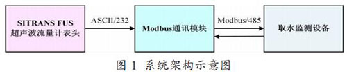 西門子 SITRANS FUS 外夾式水煤氣流量計的標(biāo)準(zhǔn)表頭支 持 4- 20mA 電流信號輸出,而水利部門的取水監(jiān)測設(shè)備應(yīng)用層 采用的是 Modbus 協(xié)議,物理層采用的是 RS485 標(biāo)準(zhǔn),無法與SITRANS FUS 流量計的表頭通信。針對這一問題,本文自主設(shè) 計并實(shí)現(xiàn)了一種支持 Modbus 協(xié)議的通信模塊,使得超聲波流量計表頭與取水監(jiān)測設(shè)備可以以 Modbus 協(xié)議進(jìn)行通訊。