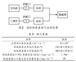 (3) 新建 1 套脫硫管道式渦街流量計(jì),把新建吹風(fēng)氣回收系統(tǒng)煙氣和三廢爐煙氣經(jīng)除塵后引入新脫硫塔,脫硫除塵后凈煙氣經(jīng)過塔ding煙囪排放。硫酸銨回收利用現(xiàn)有管道式渦街流量計(jì),新建 1 座生產(chǎn)廠房,生產(chǎn)廠房內(nèi)設(shè)置硫酸銨臨時(shí)倉庫。兩路煙氣匯總后進(jìn)入一塔設(shè)計(jì)見圖 2,煙氣參數(shù)見表 3。
