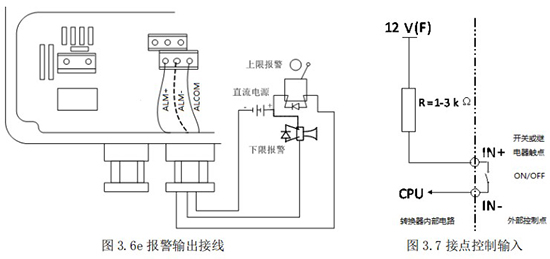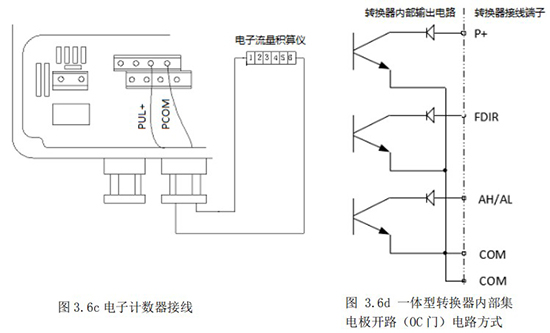 頻率(脈沖)、上下限報警、流向標示等輸出均為集電極開路的電平輸出信號。
