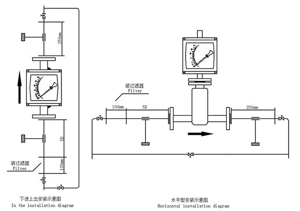 4.若介質中含有固體雜質,應在閥門和直管段間加裝過濾器;若介質中含有鐵磁物質,應在金屬浮子流量計的上游安裝磁過濾器。