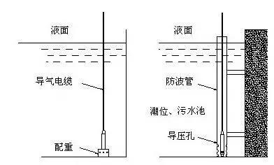 1、纜式投入式液位計(靜壓式水位計)通常投入直徑大于水位計直徑的的PVC管、鋼管,管道固定在水中,不同高度打若干小孔,以便水通暢進入管內?;蛘咴诘撞考友b阻尼裝置,以過濾泥沙和消除動態壓力和波浪對測量的影響。