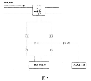 圖2是表示流量件與差壓變送器的連接圖,節流孔板的安裝必須使節流件刀口的方向與介質的流向相垂直,而且刀口有刃的一面背對來流方向,來流壓力變取壓于正壓側,才能保證測量的準確性。
